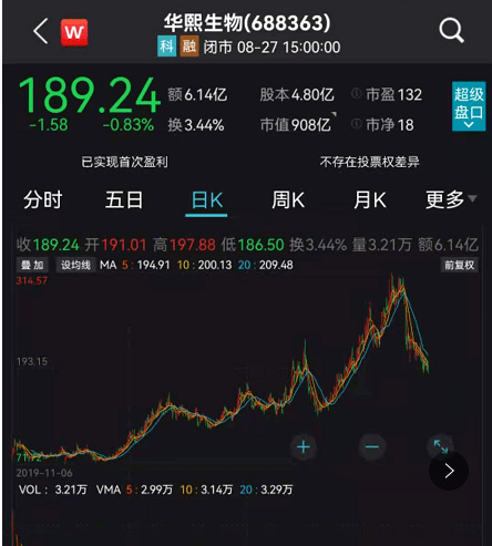 龙头华熙生物已经跌破千亿市值,最新市值908亿元。