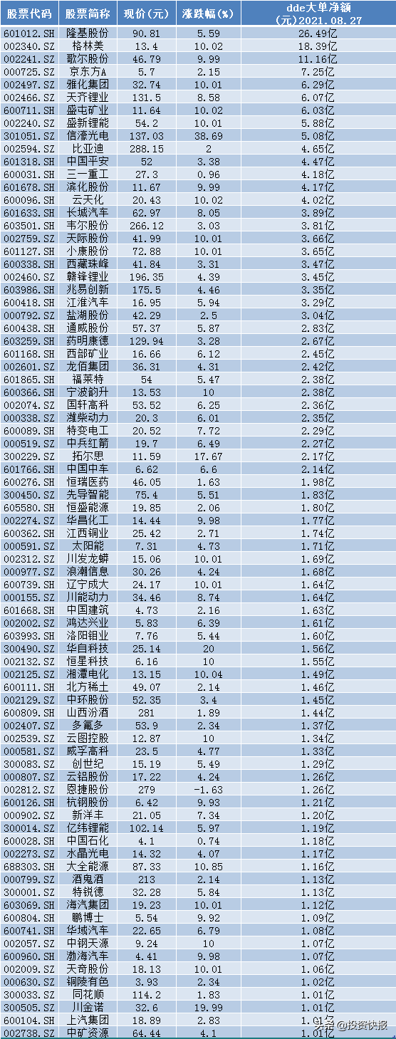 今日尽管主力资金净流出金额较高,但仍有超过395亿元主力资金入场抄底,有79只个股获得超亿元抢筹。其中,最受主力资金追捧的是隆基股份,大单净流入26.49亿,独霸榜首。另外,格林美、歌尔股份2只个股也获得超10亿元的资金抢筹。