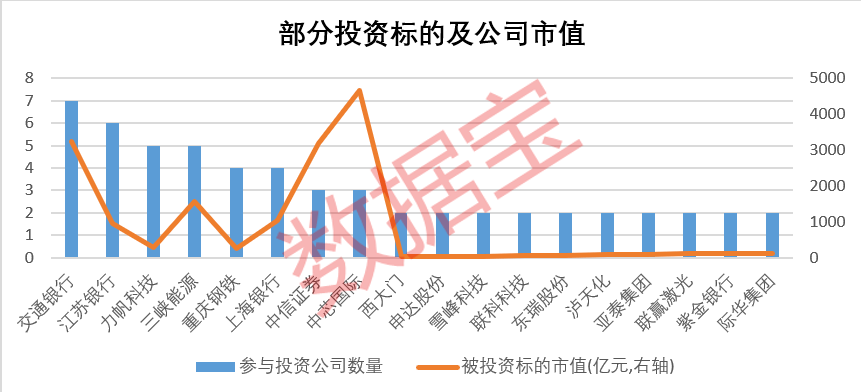 数据宝统计显示,截至当前,A股公司中共有278只标的成证券投资对象,其中, 交通银行、江苏银行、力帆科技、三峡能源获5家以上公司投资。