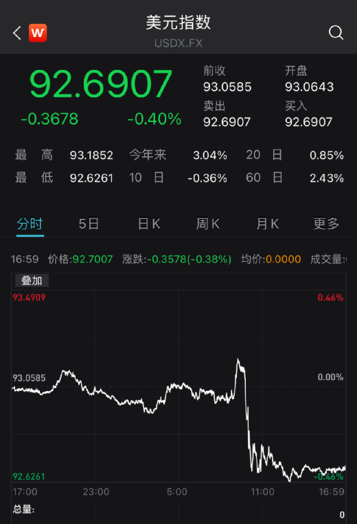 美元指数则直线下跌。