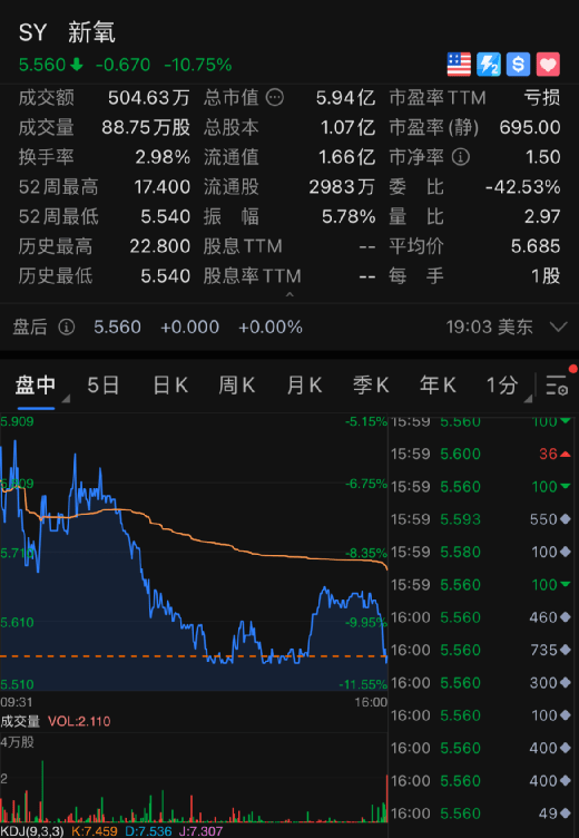 新氧大跌近11%。