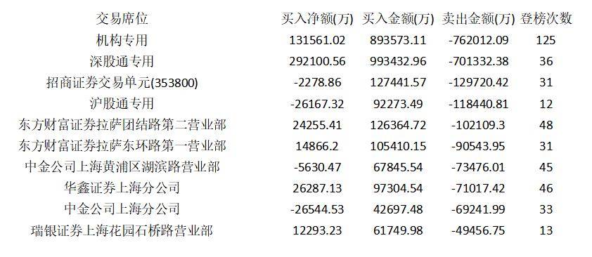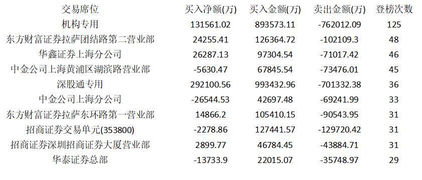 从表三的数据可以看出,游资保持活跃,本周登榜次数超过10次的游资有15家,西藏东财拉萨系的依然是最为活跃的游资,从买入净额来看,游资交投大增,买入净额超过亿元的营业部席位高达30家,分别是游资国泰君安上海江苏路营业部、游资中银国际证券海口蓝天路营业部、游资银河证券绍兴营业部、游资东方证券上海浦东新区源深路营业部、游资华鑫证券上海分公司、游资国联证券上海邯郸路营业部、游资东方财富证券拉萨团结路第二营业部、游资安信证券西安曲江池南路营业部。
