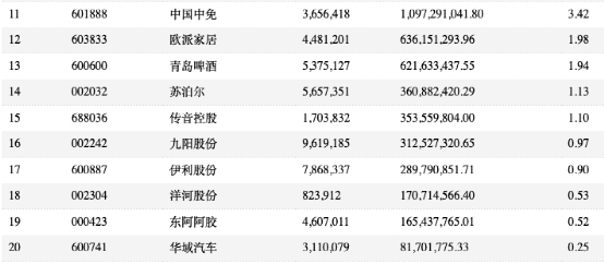此外,思源电气、三七互娱、宝钢股份、巨星科技、三一重工、伟明环保、仙鹤股份等也位列基金前20大重仓股,基金持股市值占基金净值比例超过1.5%。