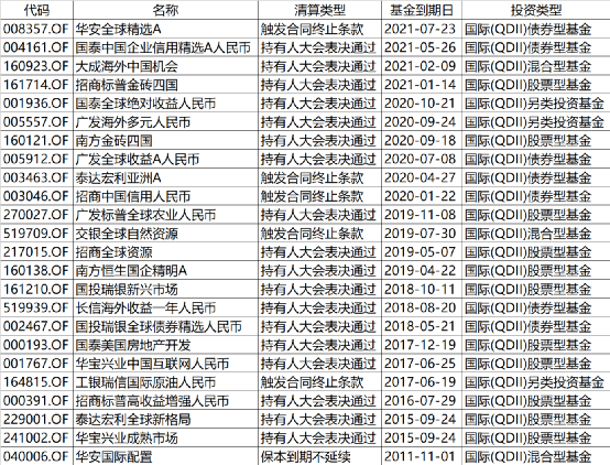 据Wind统计,以基金到期日为基准,今年共有4只QDII基金清盘,分别为招商标普金砖四国、大成海外中国机会、国泰中国企业信用精选,以及华安全球精选。其中,前两只分别为股票型和混合型,后两只为债券型。