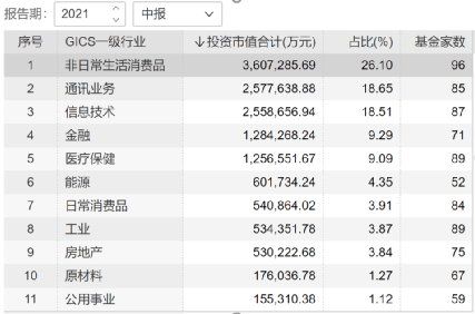 此外,金融、能源的投资市值和占比均出现环比下降。市值分别由一季度末的133.94亿元、67.80亿元,下降至二季度末的128.43亿元、60.17亿元,占比分别由一季度的11.56%和5.85%降至二季度的9.29%和4.35%。医疗保健持有市值单季度增加33.04亿元,至125.66亿元,占比由8%提升至9.09%。