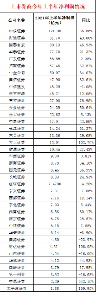 上半年最赚钱的五家券商也浮出水面,分别为中信证券、海通证券、国泰君安、华泰证券和广发证券。整体来说,这5家券商和去年相比较为一致。