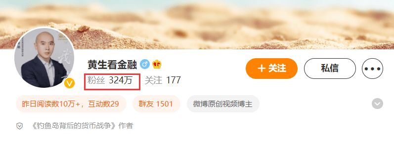而在微博平台上,“黄生看金融”的粉丝高达324万。