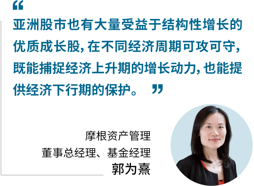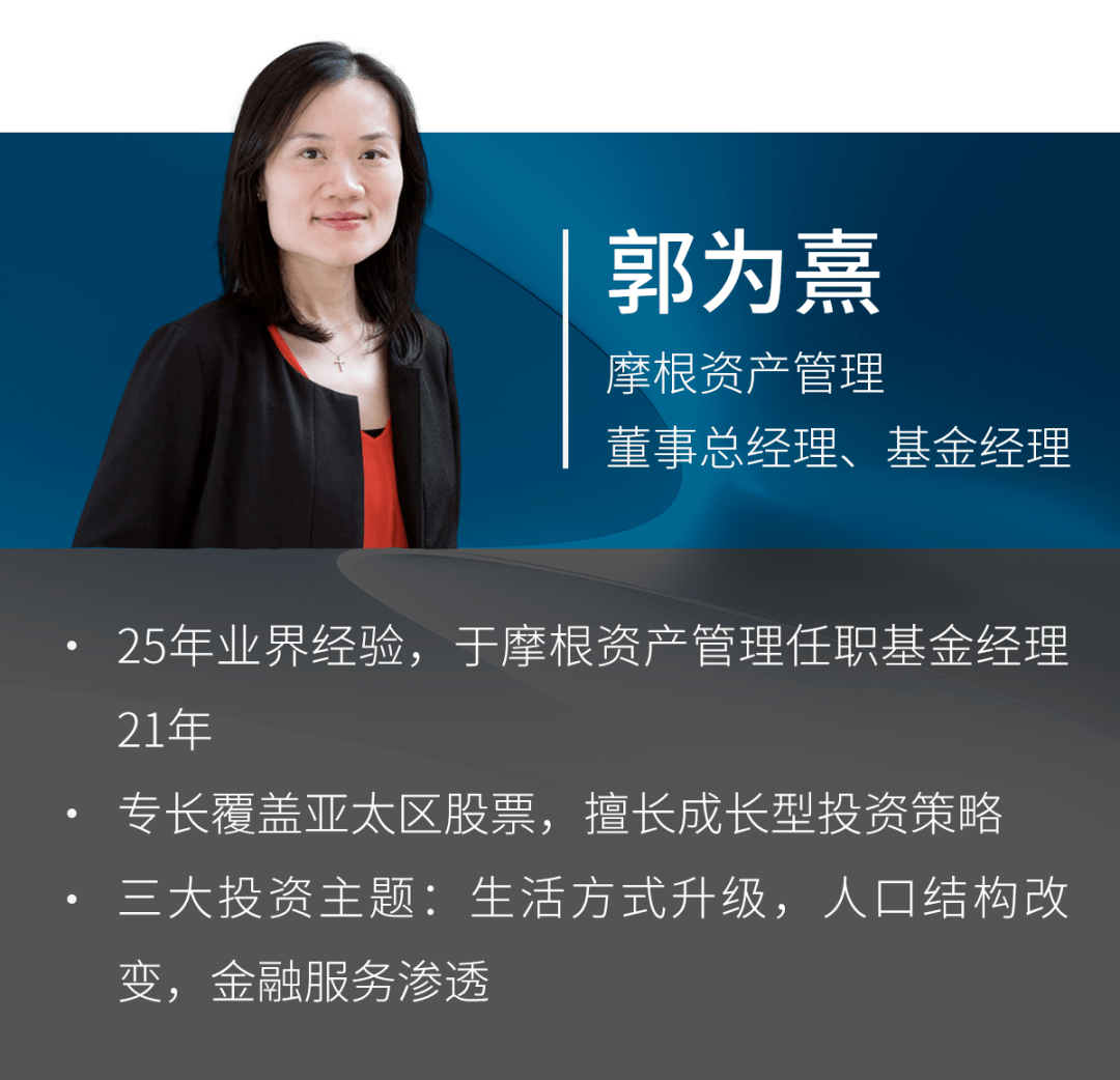郭为熹 当前亚洲市场拥有众多充满活力的世界顶尖公司,引领全球消费、互联网和科技领域的创新潮流。相应的, 亚洲股市也有大量受益于结构性增长的优质成长股,在不同经济周期可攻可守,既能捕捉经济上升期的增长动力,也能提供经济下行期的保护。这些企业普遍受益于亚洲的三大“超级趋势”——生活方式升级、人口结构改变和金融服务渗透。而且这些超级趋势非但没有因疫情而受阻,反而在疫情中加速推进。