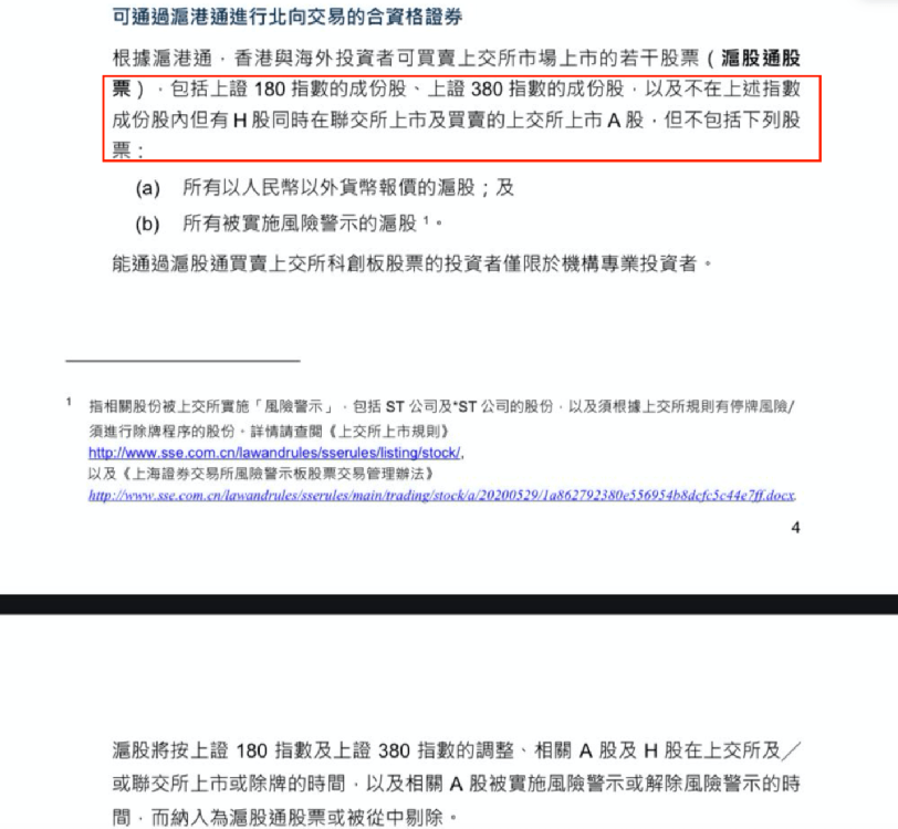 同时,以人民币以外货币计价的股票或被实施风险警示的股票不会进入沪股通。