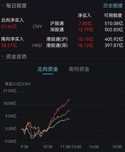 北向资金净买入超21亿元。