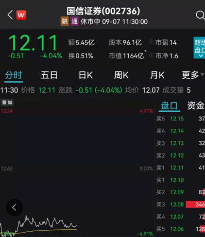 国信证券 低开近5%,收跌超4%。