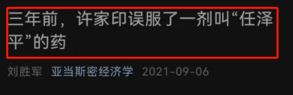 9月6日,网红经济学家刘胜军在自媒体发文《三年前,许家印误服了一剂叫“任泽平”的药》,炮轰任泽平“忽悠”了许家印。刘胜军直言恒大的激进,不仅是许家印的野心,同时也受任泽平打鸡血式“忽悠”的影响。