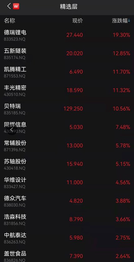 新三板精选层延续强势,20余只个股飘红。