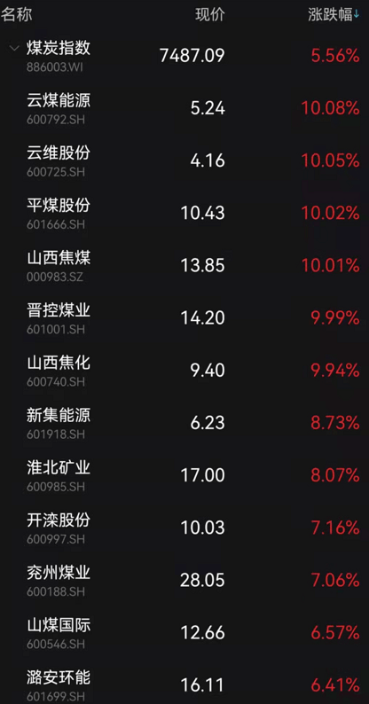 煤炭钢铁大涨超5%