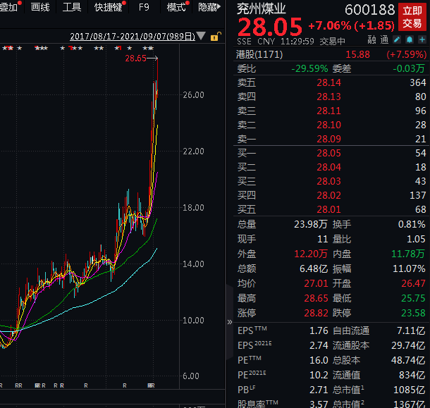 兖州煤业大涨超7% 创历史新高, 山西焦化 、 山西焦煤 同创多年新高。