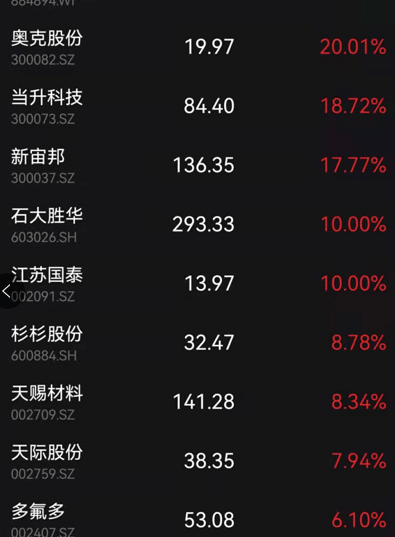 锂电池板块全线爆发,霸屏涨幅榜。