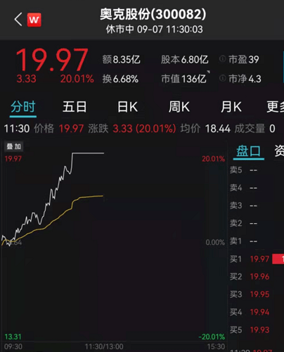 奥克股份又封板2 0%涨停。