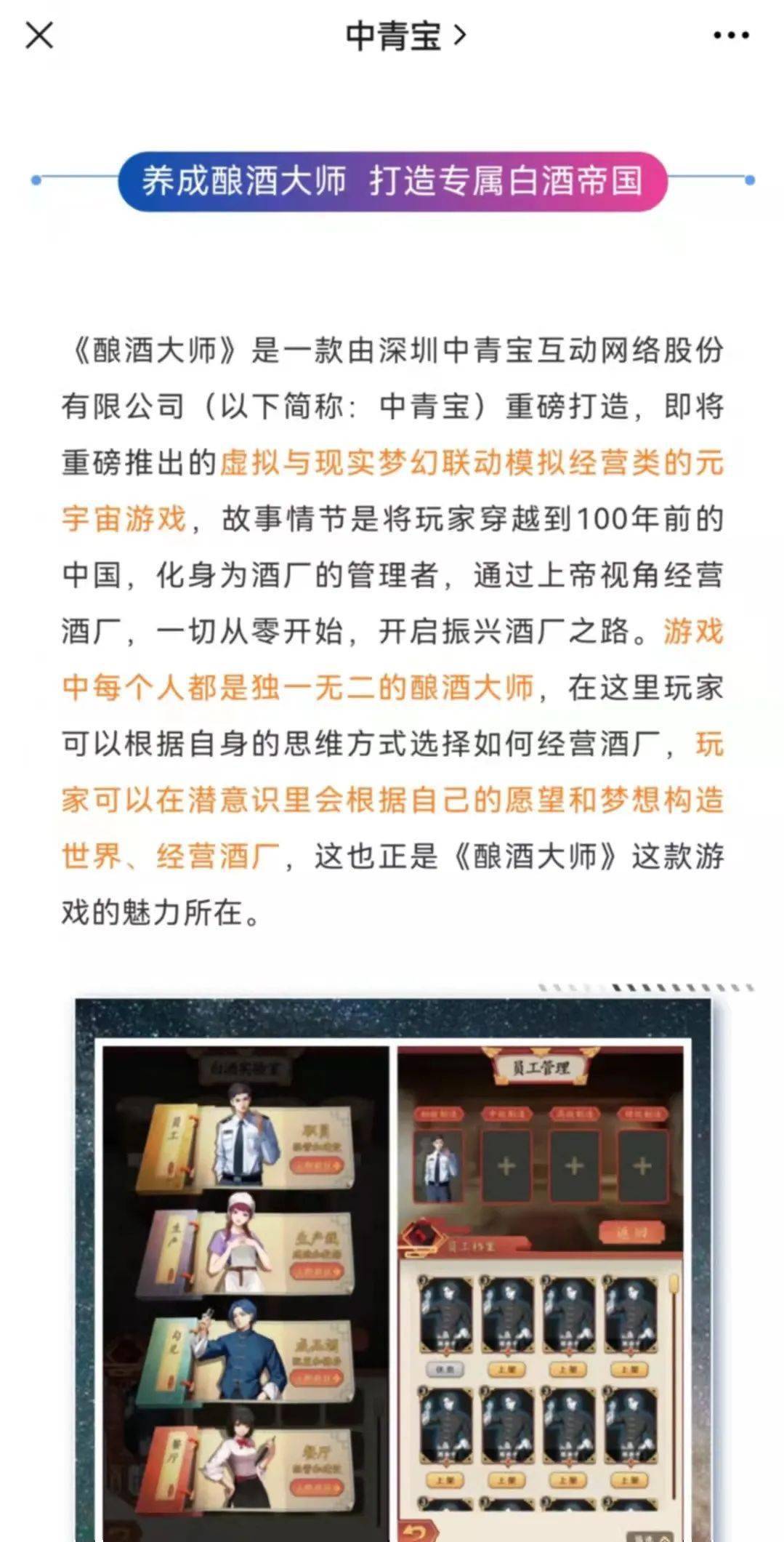 消息面上,6日, 中青宝 官方微信号消息,公司将推出虚拟与现实梦幻联动模拟经营类的元宇宙游戏《酿酒大师》,这是一次打破次元壁的尝试,游戏与真实边界开始走向消融。