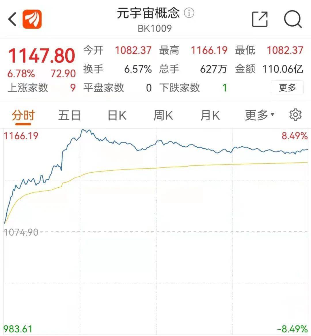 7日,“元宇宙”概念突然爆发。东财的元宇宙概念指数一度上涨超8%。截至收盘,涨幅收窄至6.78%。