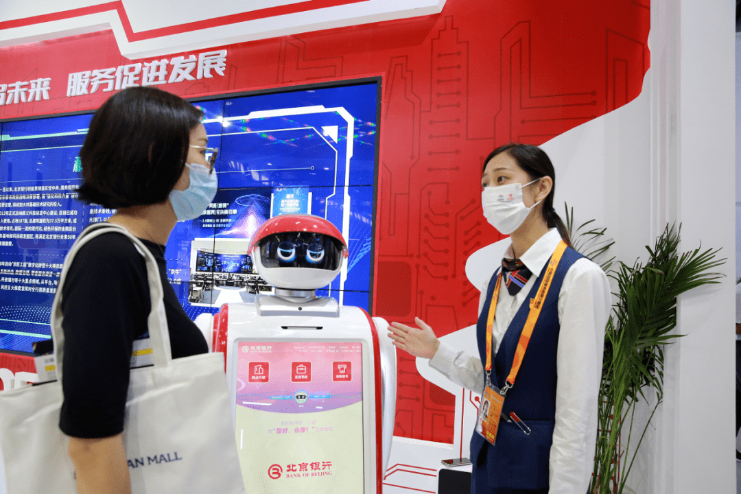 在北京银行展位,智能机器人“小康”与各位参展来宾热情互动。“小康”来自北京银行与北京市公积金管理中心携手打造的公积金“e通厅”示范网点,在这里可以实现银行服务和公积金服务的“一站通达、智慧办理”,这是北京银行推进智慧金融与行业应用场景融合的创新案例。