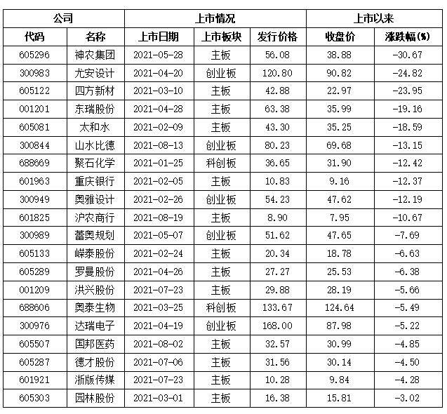 2021年上市新股中的破发公司