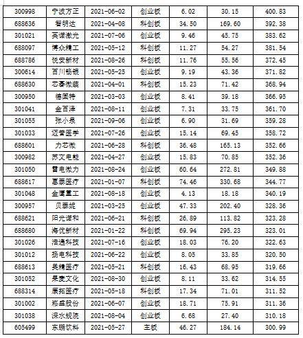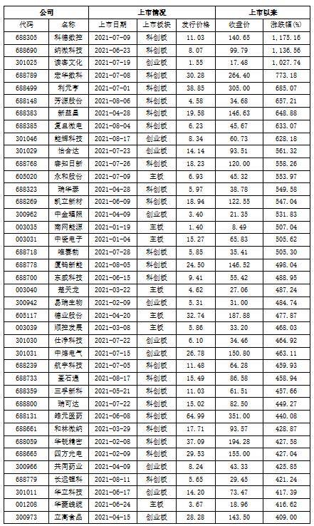2020年上市新股中涨幅逾300%的公司