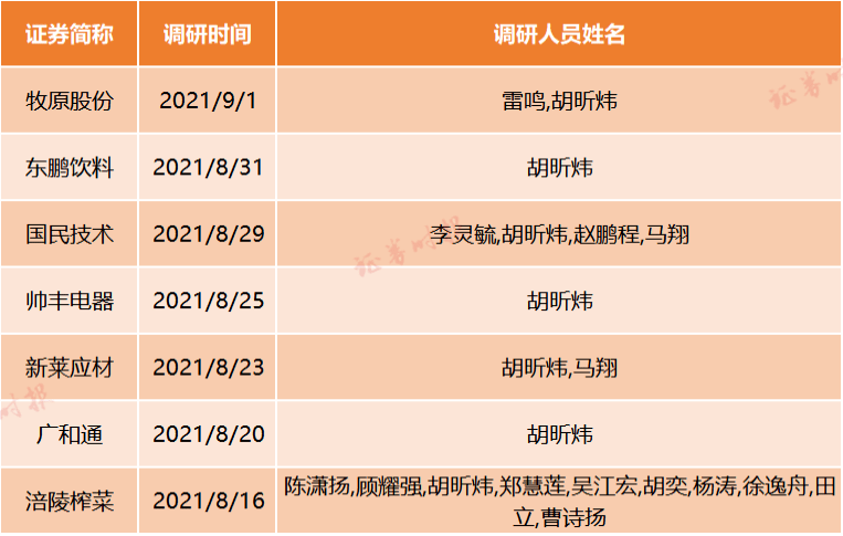 值得一提的是,与其他顶流基金经理有所不同,胡昕炜一般都喜欢亲自下场调研,下半年以来已经调研了涪陵榨菜、广和通、新莱应材、帅丰电器、国民技术、东鹏饮料、牧原股份等多家公司,调研的对象主要以消费板块股票为主。