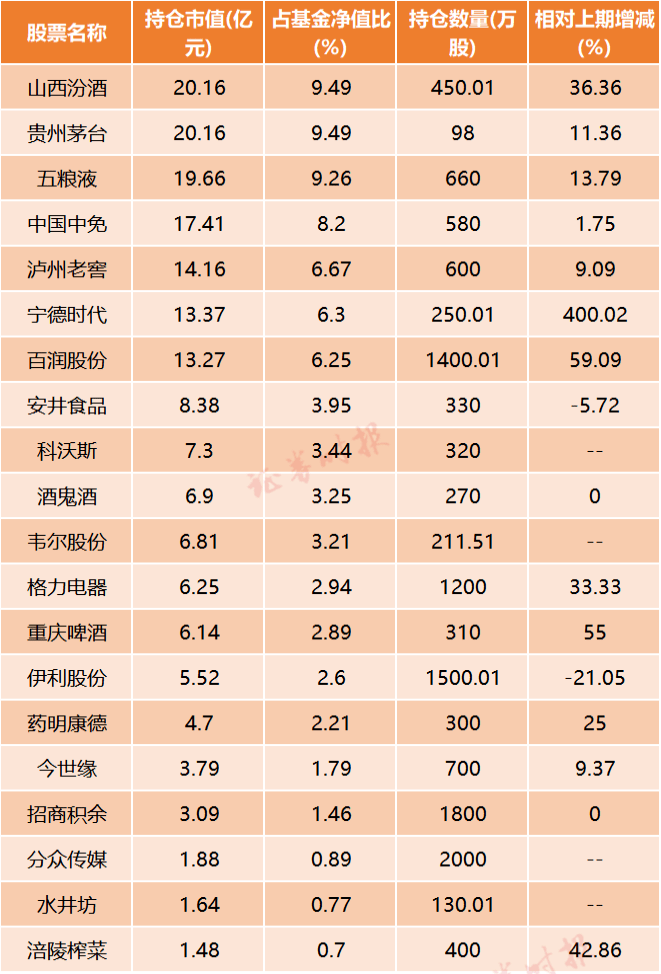 汇添富消费行业前20大重仓股