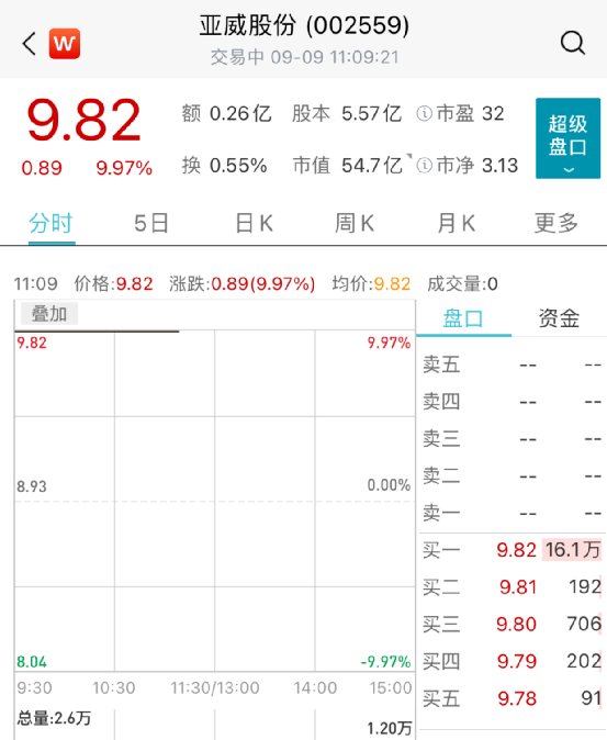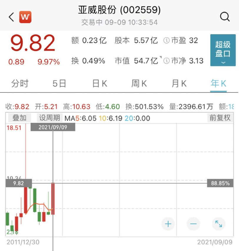 受易主消息刺激,早盘一开盘亚威股份就封涨停,截至发稿,股价依旧一字涨停,报9.82元/股,市值54.7亿元。今年以来,亚威股份股价累计涨幅近90%。