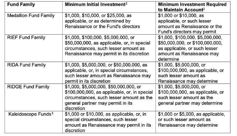 文艺复兴旗下五组基金的起投金额和追加投资金额。来源:美国证监会信披材料