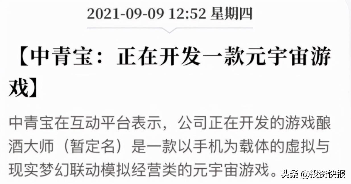 本轮元宇宙概念兴起的主要原因是,周一中青宝发文称,将打造一款能映射玩家内心世界到元宇宙的模拟经营类游戏《酿酒大师》。消息一经发酵,隔日中青宝便直线拉升迅速上板,当天喜提强势涨停,而后汤姆猫、数码视讯、顺网科技等均有亮眼上涨,根据数据显示,与宇宙产业链合计超80股,总体市值超过4万亿,其中含括VR、AR、网络游戏、云计算等多个网络领域。