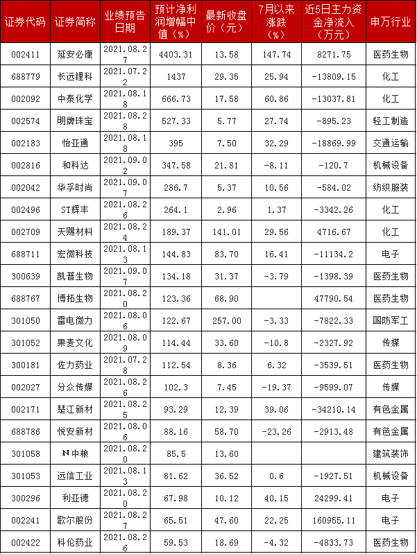 在最新公布前三季业绩预告的42家上市公司当中,根据iFinD数据计算净利润增幅中值,延安必康、长远锂科、中泰化学、明牌珠宝、怡亚通、和科达、华孚时尚、ST辉丰、天赐材料、宏微科技、凯普生物、博拓生物、雷电微力、果麦文化、左力药业、分众传媒共16家预告净利润增幅中值均在100%以上。