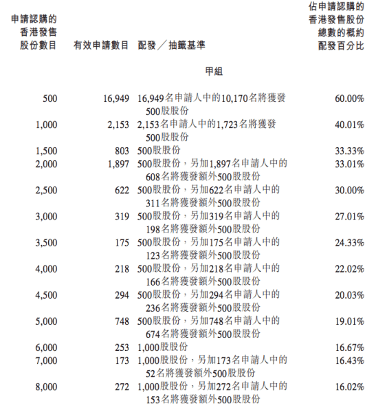 海伦司公布的招股结果显示,香港公开发售共约1.35亿股股份,接获27968份有效申请,获得30.8倍超额认购。一手500股中签率高达60%,只要认购3手就能稳中一手。由于公开发售超额认购倍数超过15倍,海伦司将2693万股从国际发售部分调至公开发售部分,公开发售的股份最终数目为4039.5万股,占发售股份总数的约30%(任何超额配股权行使前)。