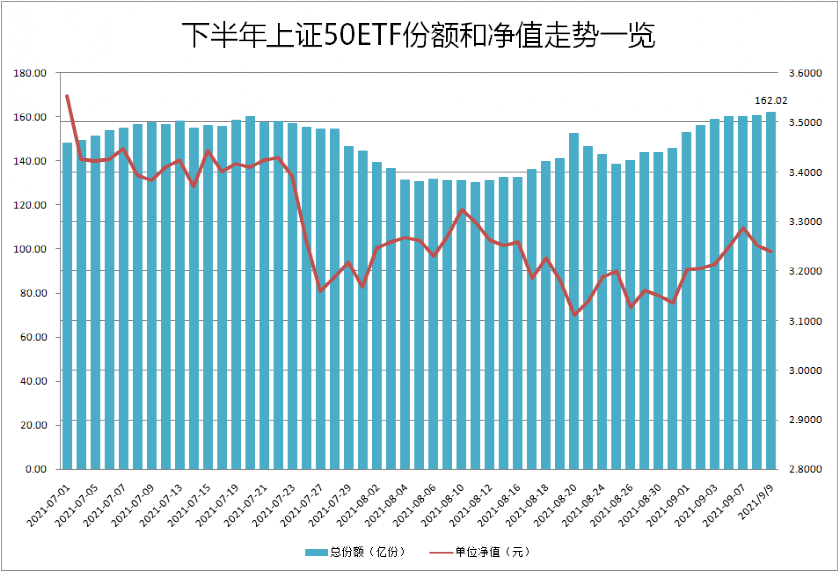 截至9月9日,上证50ETF总份额162.02亿份,创下今年以来规模新高。以区间成交均价测算,近一月净流入资金99.78亿元,逼近100亿元整数关口,成为近期最受资金青睐的股票ETF品种。