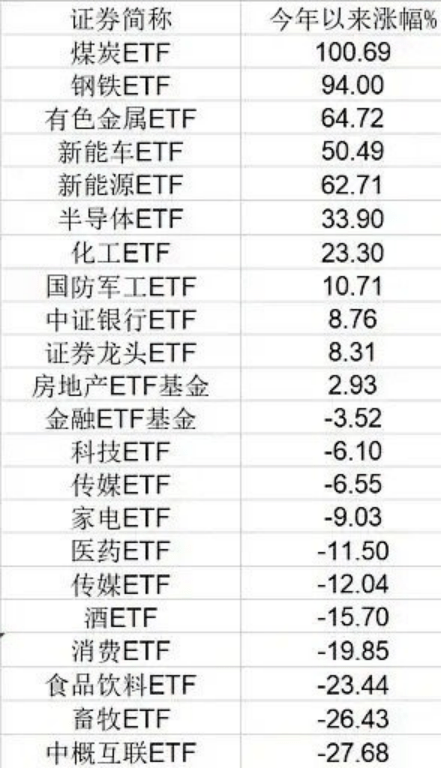 就在前一天,资本市场煤炭板块刚刚迎来“煤好”一天,煤炭ETF年内涨幅达到100.69%,成为2021年首只场内价格触及“翻倍线”的ETF基金,紧随其后的是钢铁ETF,年内涨幅亦高达94%。期货市场上,煤炭期货“三兄弟”焦煤、动力煤、焦炭纷纷站上上市以来新高。