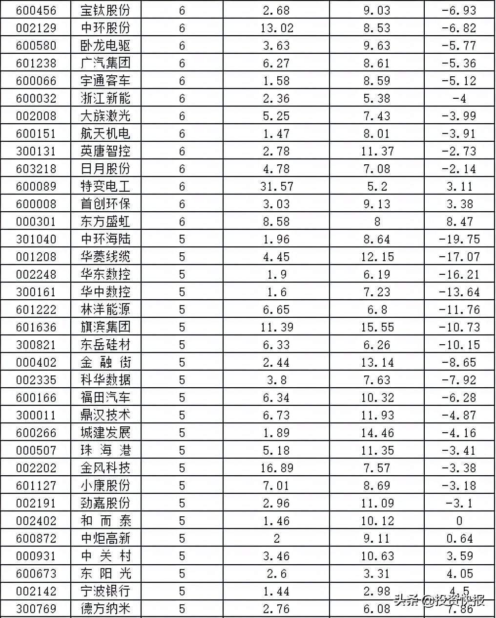 根据iFinD数据统计,主力资金连续净流出股当中有11股的资金流出总额超过10亿,它们分别是特变电工、航天发展、大洋电机、金发科技、金风科技、协鑫集成、中环股份、旗滨集团、买为股份、易事特、兆驰股份。
