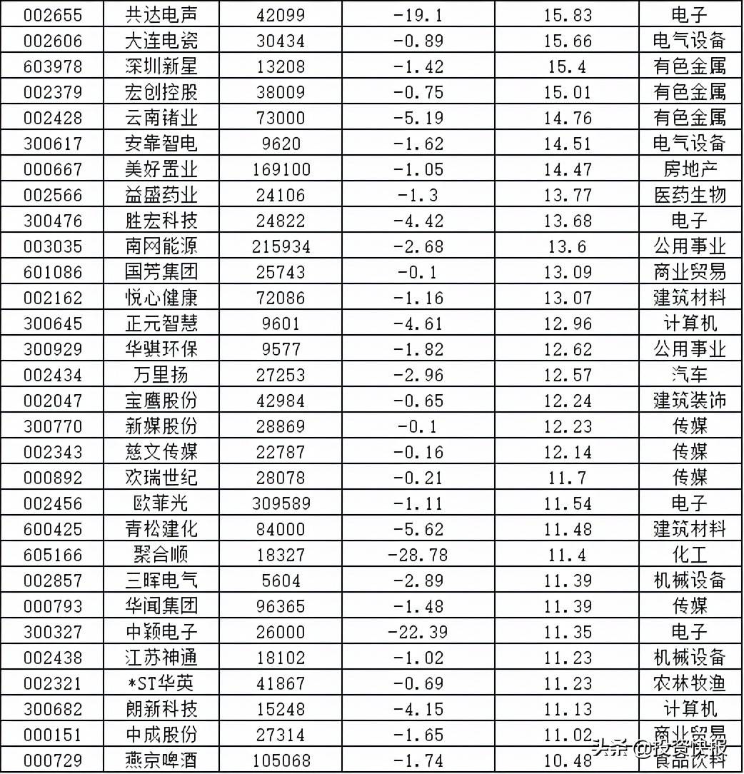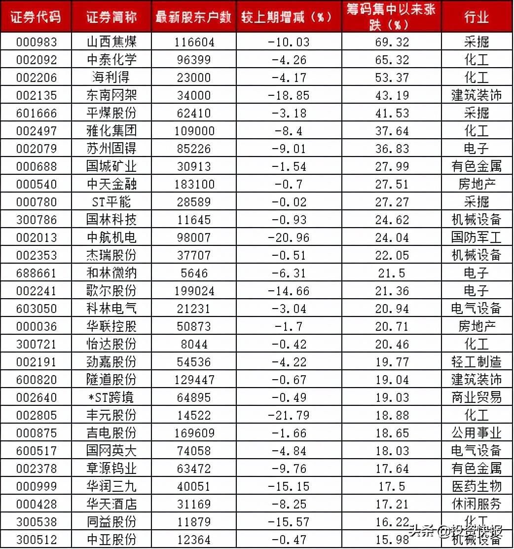 筹码集中股名单: