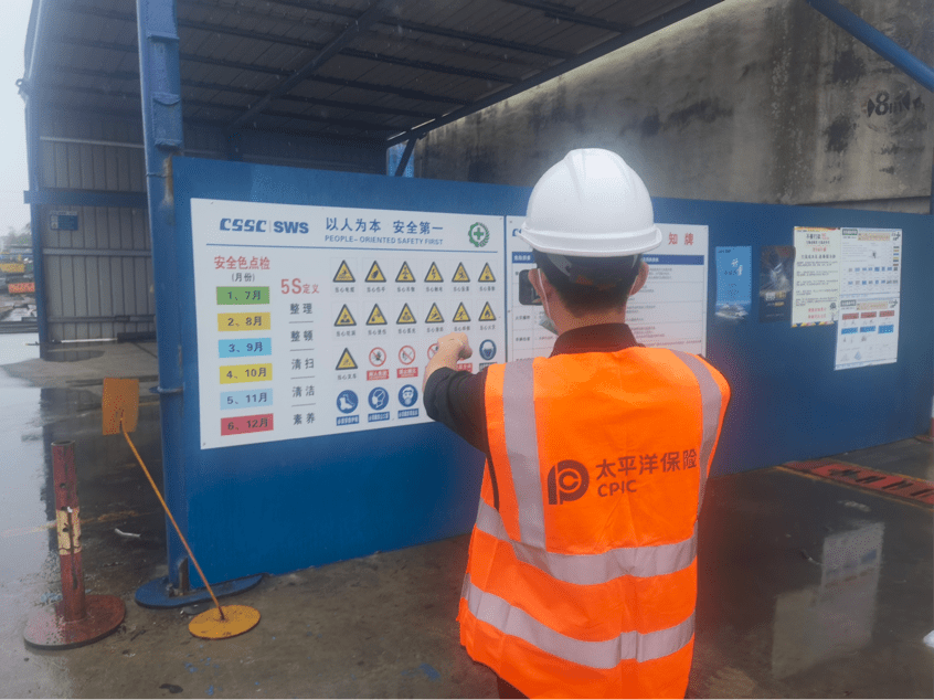 在温州,中国太保产险温州分公司全辖30余名专兼职风勘人员、理赔技术骨干穿着应急救援员及查勘制服、佩戴安全帽,全线出动走访60余家企业及工程项目,深入企业库房、施工现场、乡村民宿、海堤河堤等场所,开展抗台防汛防损服务,帮助客户排查风险隐患,协助完善防汛措施。