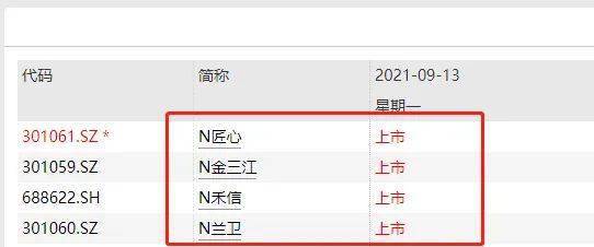 9月13日周一新股有4只,匠心家居之外,还有N金三江、N禾信、N兰卫等也上市。