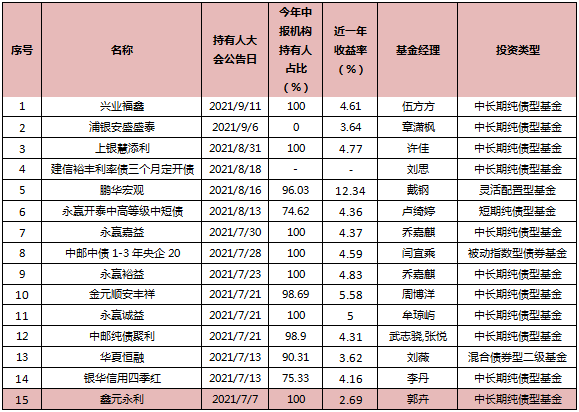 表1:今年下半年持有人大会调整赎回费率的基金一览