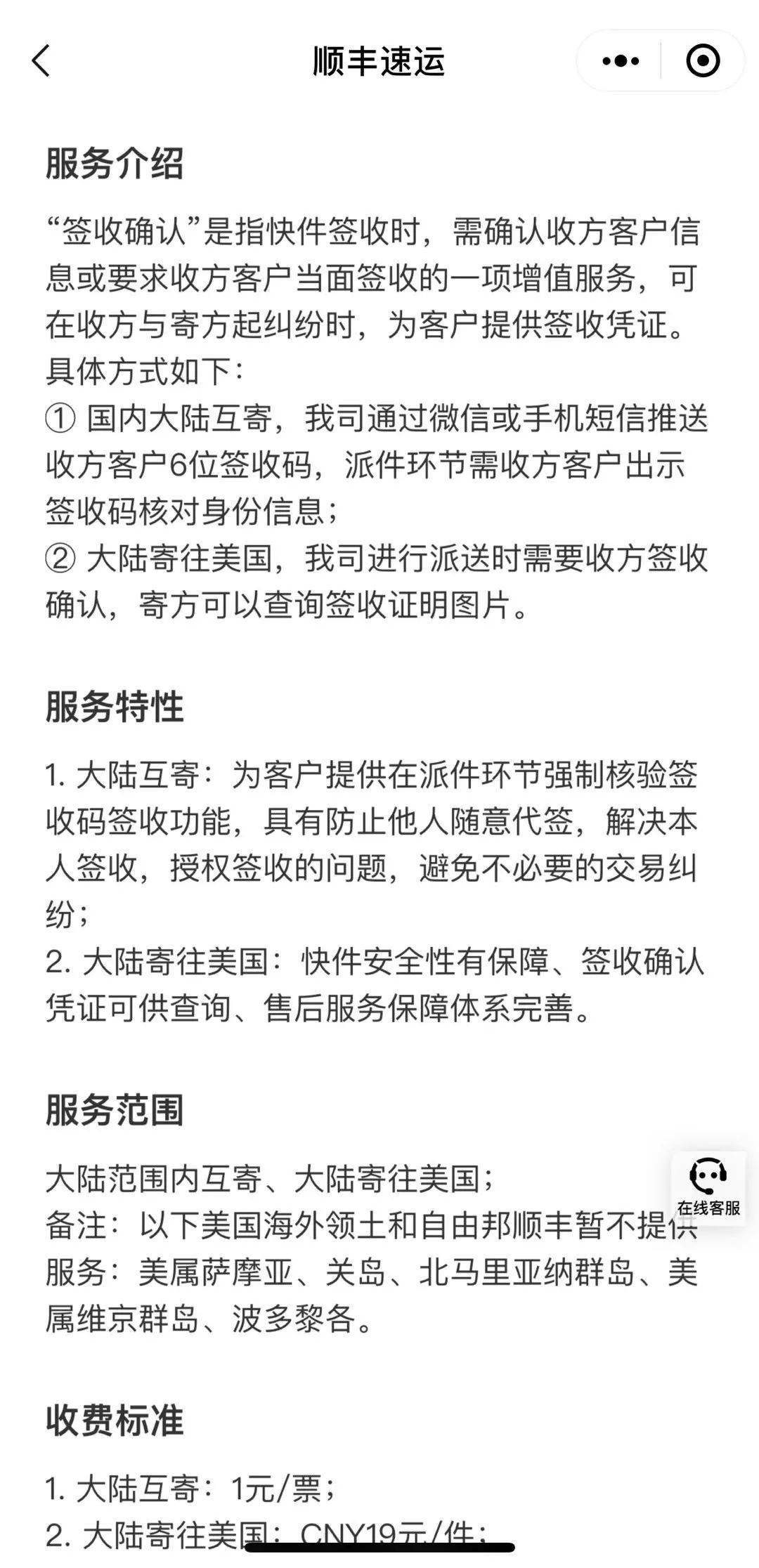 有消费者在在使用“顺丰速运+”微信公众号寄快递时,发现顺丰公司提供了一项名称为“签收确认”的收费增值服务,收费金额为1元,购买该项增值服务后,收件人需凭顺丰发送的签收码或本人身份证后6位签收快递。