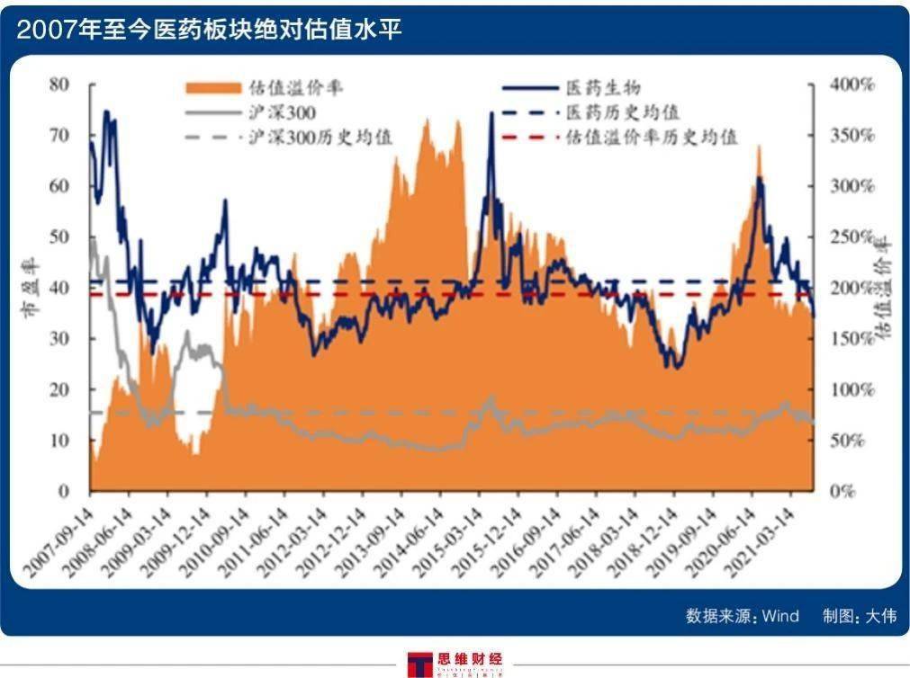 从医药行业的历史估值角度来分析,虽然目前的估值依然还是有溢价的,但是溢价已经不太高。整体来说,相比于其他一些周期类行业,还是比较合理的。