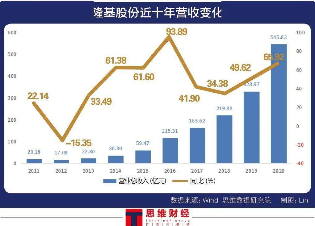 实际上,从公司业绩表现来看,进入2015年以后,隆基股份进入飞速发展期。到2020年,公司的营收已达到545.83亿元,是十年前的27倍。