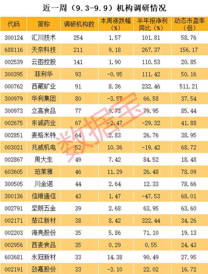 近一周机构调研个股数量有230多只,汇川技术成为调研机构数量最多的股票。