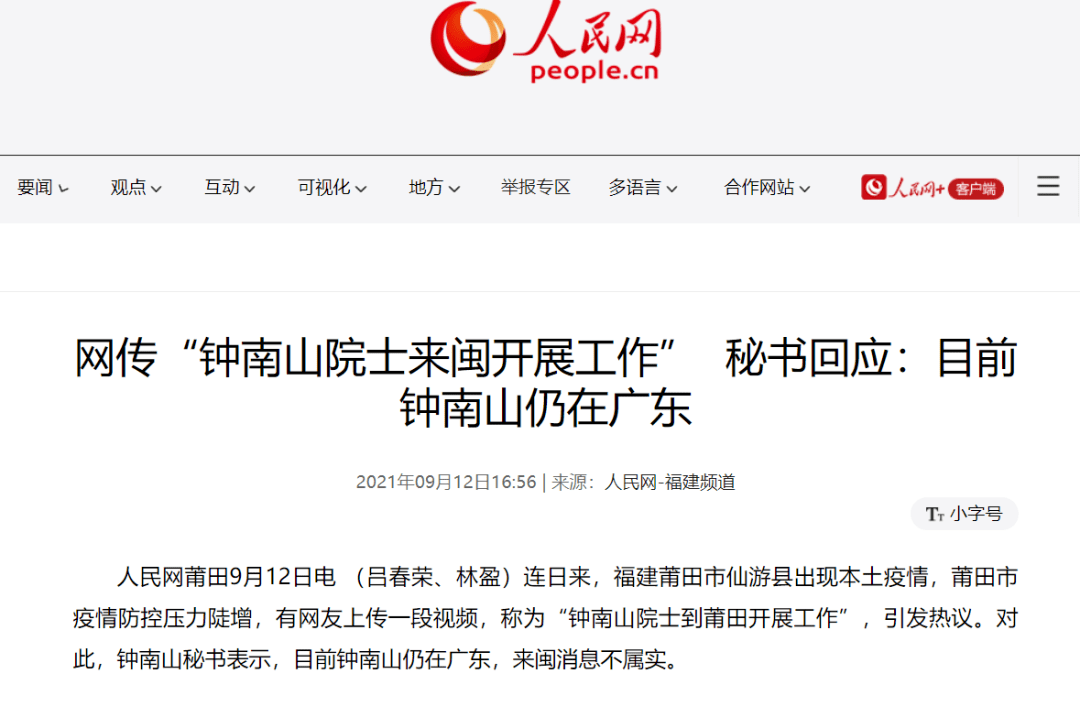 对此,钟南山秘书表示,目前钟南山仍在广东,来闽消息不属实。