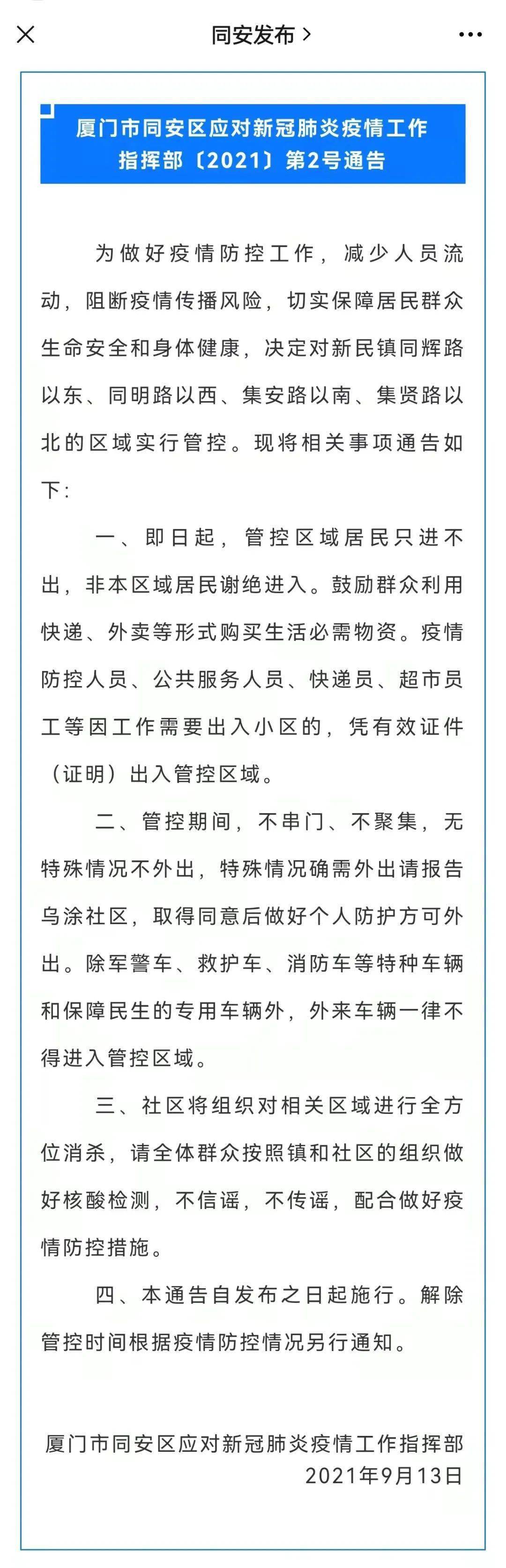 深夜连发两通告!厦门同安管控区域居民只进不出