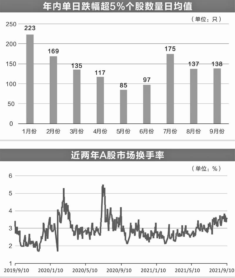 值得一提的是,自6月份后,A股市场大跌股数量显著增加,以单日跌幅超过5%的个股数量来统计,7月份大跌股日均数量达到175只,8、9月份大跌股日均数量超过130只。