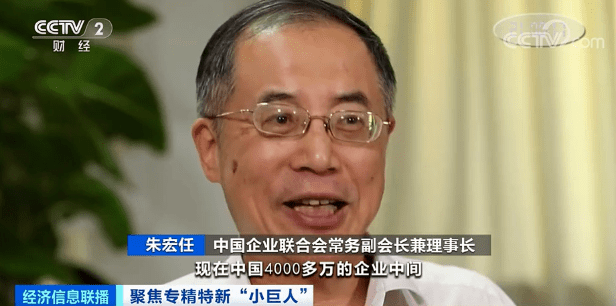 中国企业联合会常务副会长兼理事长 朱宏任:中小企业能做大文章,现在中国4000多万的企业中间,有近99%是中小企业群体。而中小企业群体里表现最为突出、最为亮眼的就是“专精特新”的中小企业。