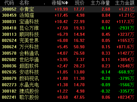 从资金面来看,今日共有12只元宇宙概念股的大单资金净流入额超1000万元,合计吸金达10亿元。其中,汤姆猫和昆仑万维最受主力的青睐,获得超亿元的大单资金净流入,数额分别为3.80亿元、1.44亿元。