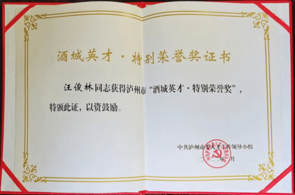 2月23日,泸州市召开市委人才工作会议,隆重表彰一批为泸州经济社会发展作出重大或突出贡献、在人才引进培育、发挥作用方面成效显著的单位和个人,四川郎酒股份有限公司荣获“泸州市人才先进工作单位”,郎酒集团董事长汪俊林荣获“酒城英才·特别荣誉奖”。